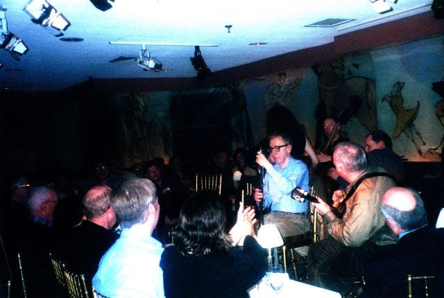 When Grierson came to visit me for the first time in New York City, back in 2002, we knew exactly what our first stop would be: The Cafe Carlyle, where Woody Allen had been playing clarinet with his jazz band for 30 years. We sat in the audience, rapt, seeing Allen in person for the first time in our lives. He was older, frailer than we realized. He was 66 then. He's 83 now.